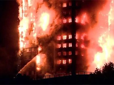據(jù)后來(lái)倫敦市長(zhǎng)Sadiq Khan表示,因?yàn)榇髽莾?nèi)部的火勢(shì)太嚴(yán)重,消防官兵也只能達(dá)到12層。從晚上到白天,這場(chǎng)燒了幾乎12個(gè)小時(shí)才慢慢被撲滅。因?yàn)檎髽菐缀醣粺?,人們懷疑它有倒塌的危險(xiǎn),于是封鎖大樓周圍的街道,還將附近居民樓的住戶緊急轉(zhuǎn)移。