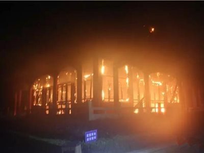 21日凌晨3時32分,廣水消防接到報警稱:位于該市印臺廣場古建筑“魁星樓”發(fā)生火災。20名消防官兵帶4輛消防車迅速趕赴現場。只見現場火勢較大、濃煙滾滾,經偵查發(fā)現起火點是古樓一樓,正向二樓蔓延。