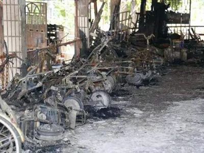 現(xiàn)場(chǎng) 多輛車(chē)被燒成鐵架,私拉電線(xiàn)充電或是“元兇”