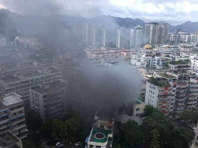 昨晚6時(shí)14分,消防部門(mén)接到報(bào)警,三個(gè)消防中隊(duì)近40名消防隊(duì)員于10分鐘內(nèi)相繼趕到。記者在臨近火災(zāi)現(xiàn)場(chǎng)的大廈上看到,火災(zāi)現(xiàn)場(chǎng)的滾滾濃煙籠罩了附近幾個(gè)小區(qū)。