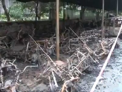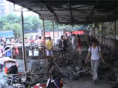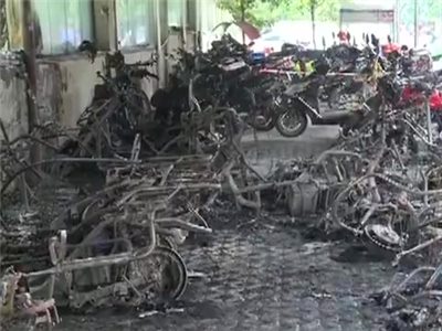 昨天(2017年9月25日)凌晨兩點,永川區(qū)中山路街道,宇界維詩卡小區(qū)的停車棚發(fā)生火災,五十多輛電動車被燒成光架子。