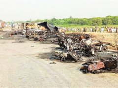 一輛油罐車25日在巴基斯坦中部地區(qū)翻車起火,并引發(fā)爆炸。據(jù)醫(yī)療部門稱,這起事故已經(jīng)造成至少153死亡,另外有約百人受傷,其中數(shù)十人傷情嚴(yán)重。 據(jù)報(bào)道,當(dāng)?shù)貢r(shí)間25日早6時(shí)30分
