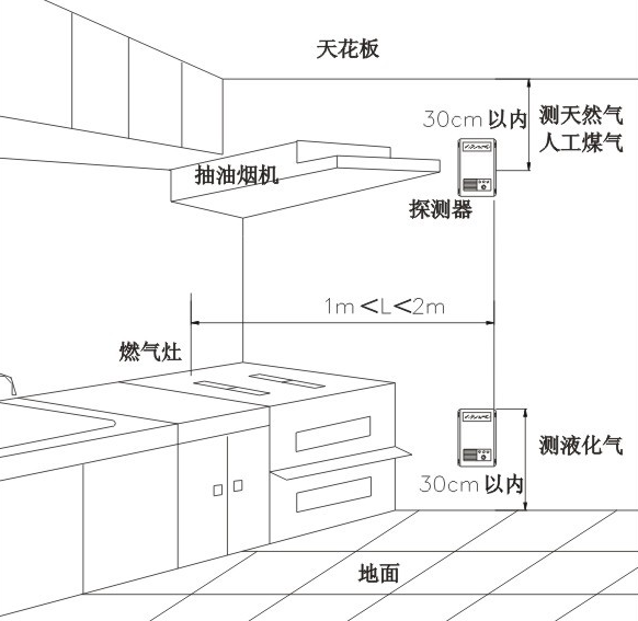 家用燃?xì)鈭?bào)警器安裝注意事項(xiàng):