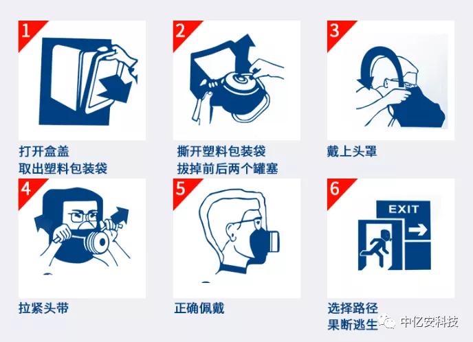 那火災(zāi)逃生面具的正確使用方法到底是怎樣的呢?看下圖: