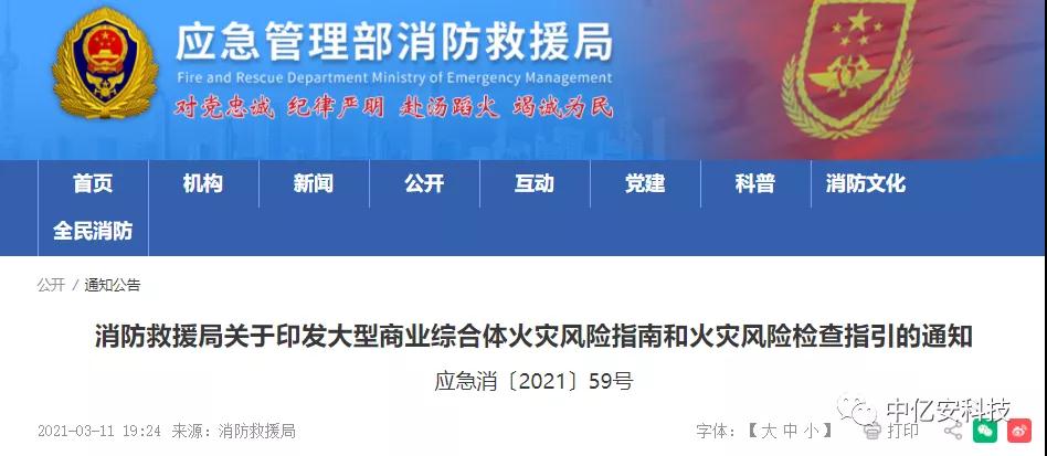 3月11日,應(yīng)急管理部消防救援局發(fā)布《消防救援局關(guān)于印發(fā)大型商業(yè)綜合體火災(zāi)風(fēng)險(xiǎn)指南和火災(zāi)風(fēng)險(xiǎn)檢查指引的通知》,通知中明確:商業(yè)綜合體消防安全責(zé)任人、管理人要定期帶隊(duì)開展消防安全檢查,全國各地區(qū)要加強(qiáng)消防監(jiān)督檢查工作。